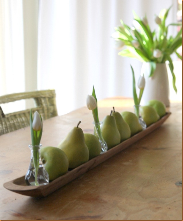 I love the tulip and pear centerpiece.