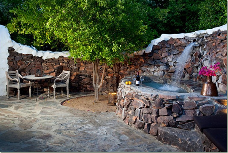I love the little open fires alongside the pool.
